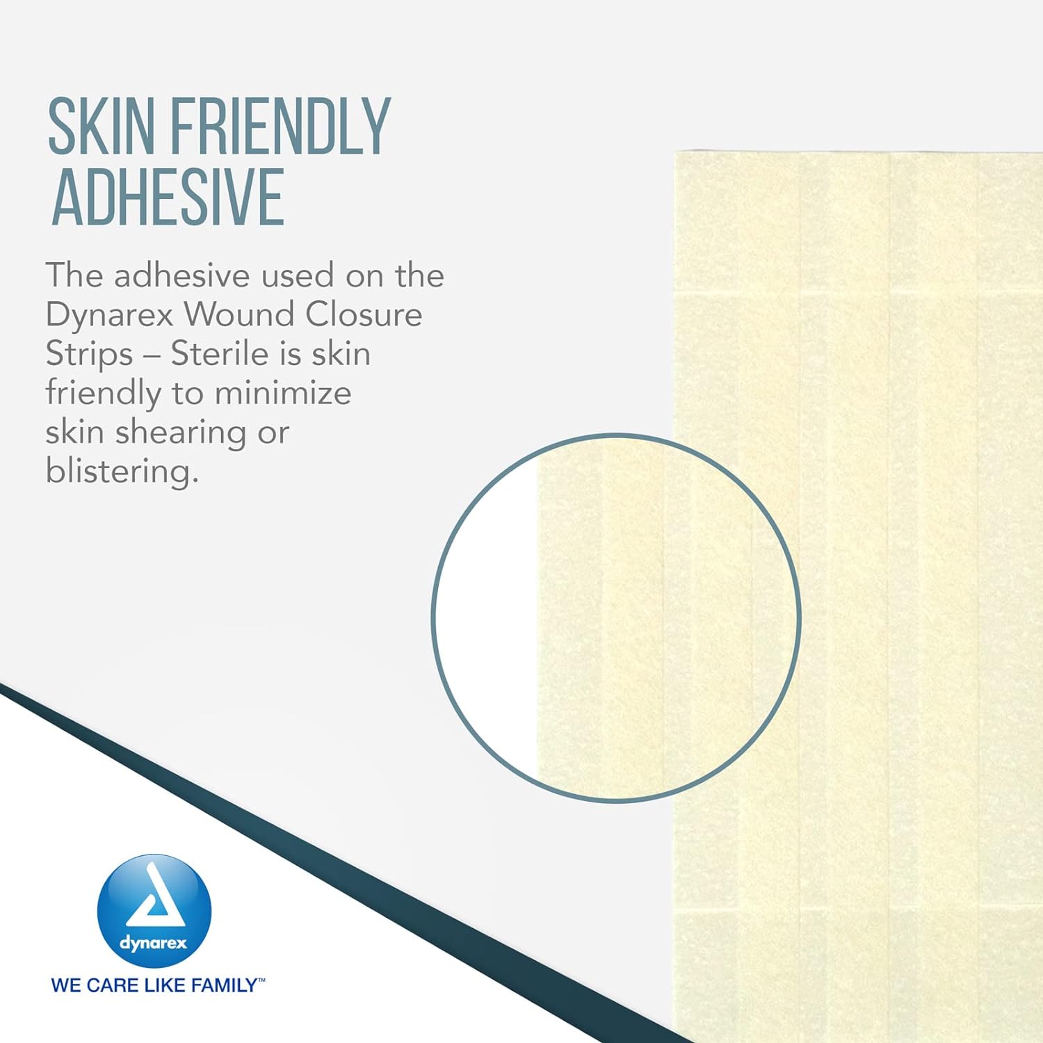Dynarex Wound Closure Strips are crafted from non-woven materials reinforced with polypropylene fibers for enhanced durability. The sterile Strips feature a premium adhesive for secure wound closure, making them ideal for use following early suture or staple removal.