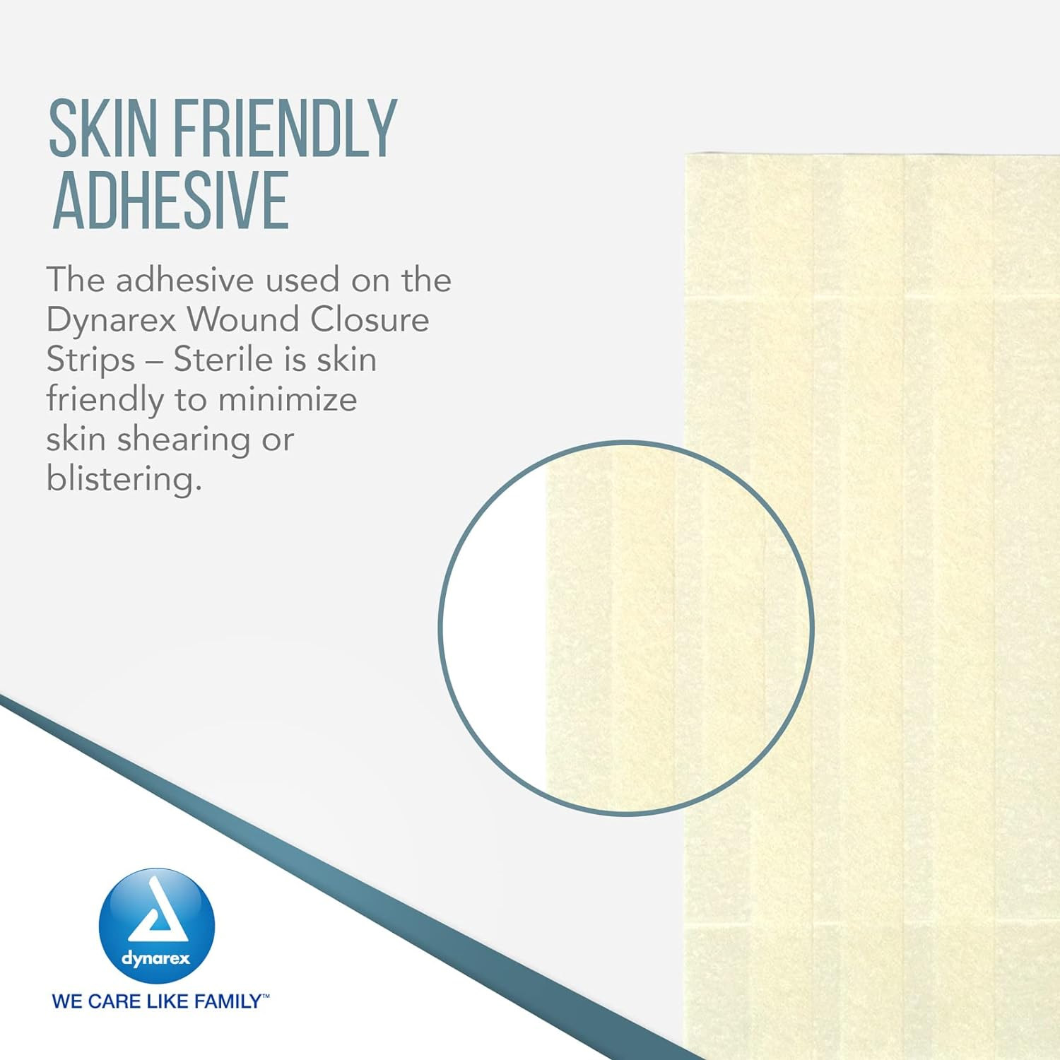 Skip to contentDynarex Wound Closure Strips are crafted from non-woven materials reinforced with polypropylene fibers for enhanced durability. The sterile Strips feature a premium adhesive for secure wound closure, making them ideal for use following early suture or staple removal.