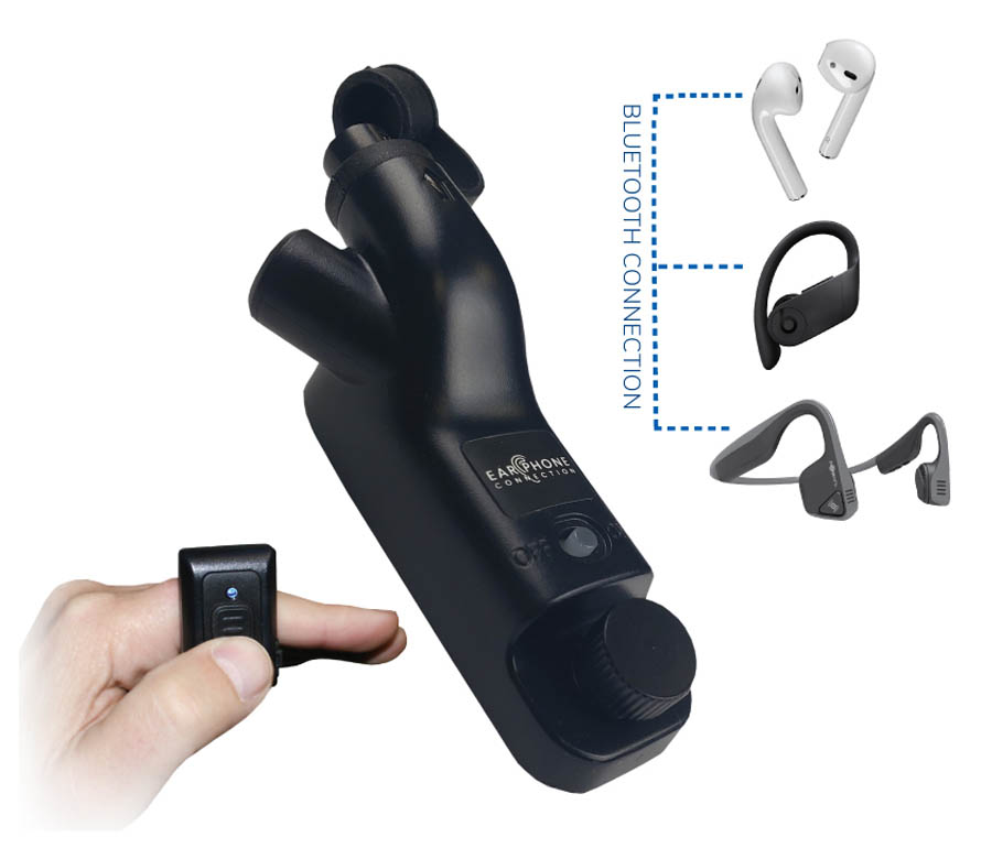 Bluetooth Dongle w/ Easy-Connect and Bluetooth Remote PTT Switch with on/off kill switch, accessory jack and dual pairing.