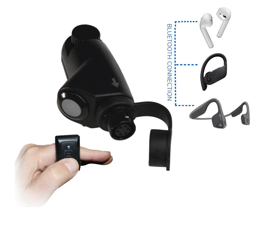 Bluetooth Remote PTT can be mounted on a handlebar, weapon, or worn on a finger for discreet use.