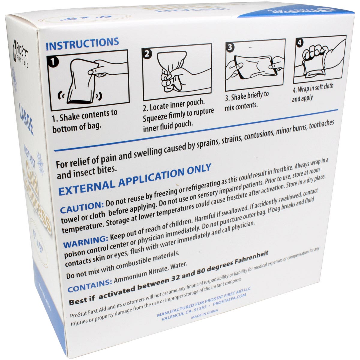 Our 6" x 9" Instant Cold Compress temporarily relieves minor pain and swelling for sprains, strains, aches, bruising, and sore joints. The Urgent First Aid™ instant cold packs are conveniently disposable with no pre-chilling required for quick, effective relief. No messy ice bags needed. Just shake, squeeze, shake again and apply for instant cool comfort and treatment of injuries.