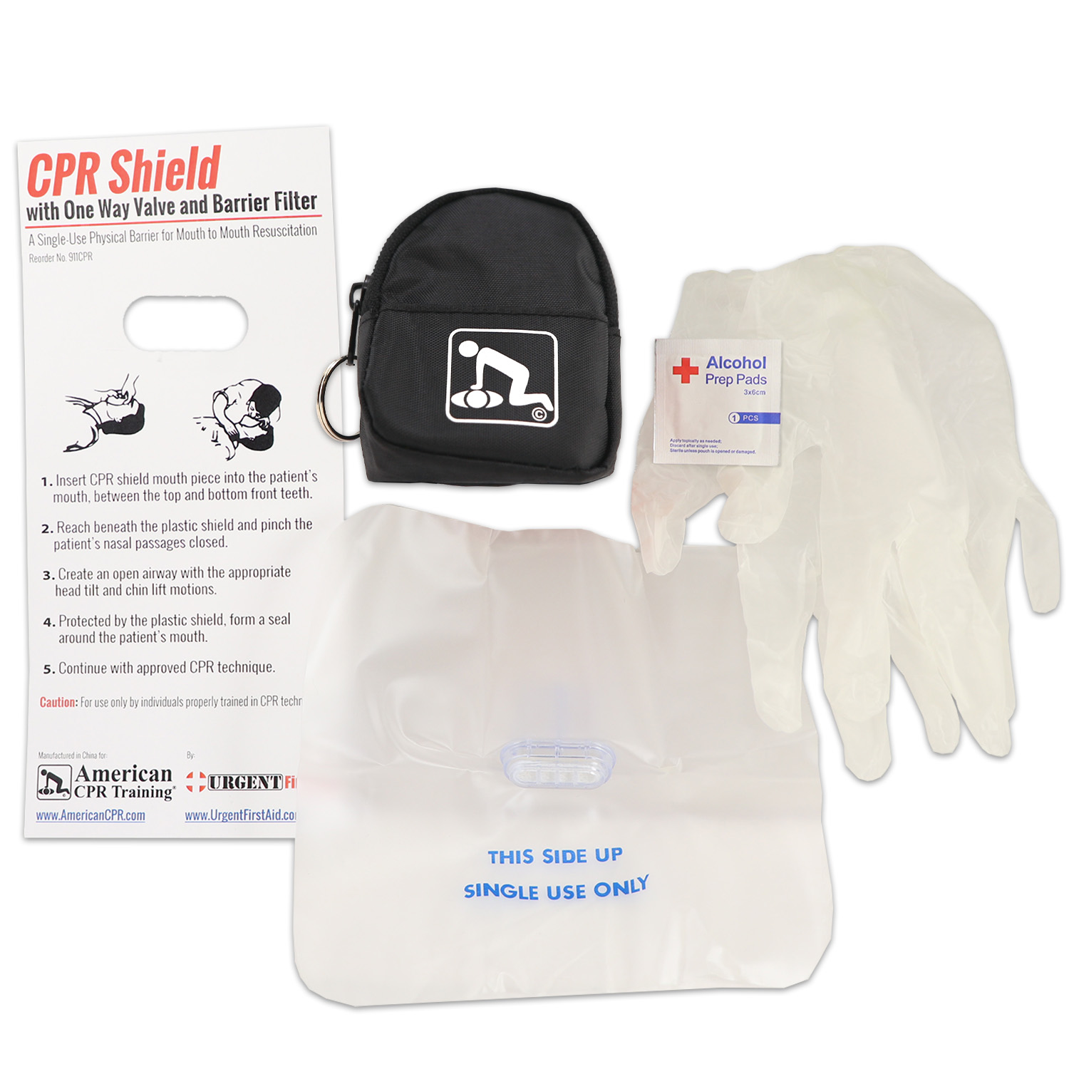 Skip to contentMini backpack w/ belt loop and key ring includes CPR faceshield, 4 exam quality gloves, 1 personal antimicrobial wipe, black, 1 set