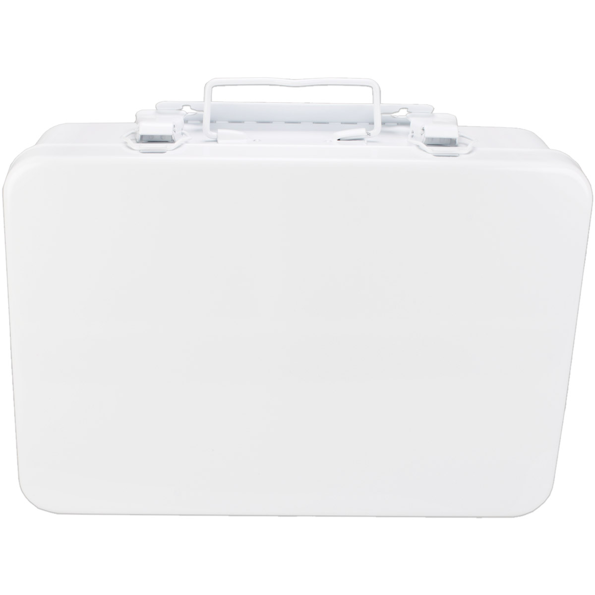 This horizontally configured empty metal first aid case features 1 shelf, hinges and a gasket. Holds up to 16-units of product.