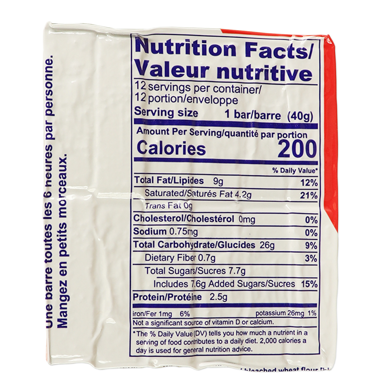 Skip to contentAdequate daily food is essential to surviving any emergency or disaster. These 2400 Calorie Food Bars were made with survival situations in mind and are perfect to ensure your body is getting at least 800 calories worth of fuel per day. Each pack contains 6 individual bars, each containing 400 calories and taste like shortbread cookies. They have a shelf life of up to 5 years so they’ll stay fresh even if you don’t use them right away. You can store these bars just about anywhere without worrying about spoilage or temperature control.