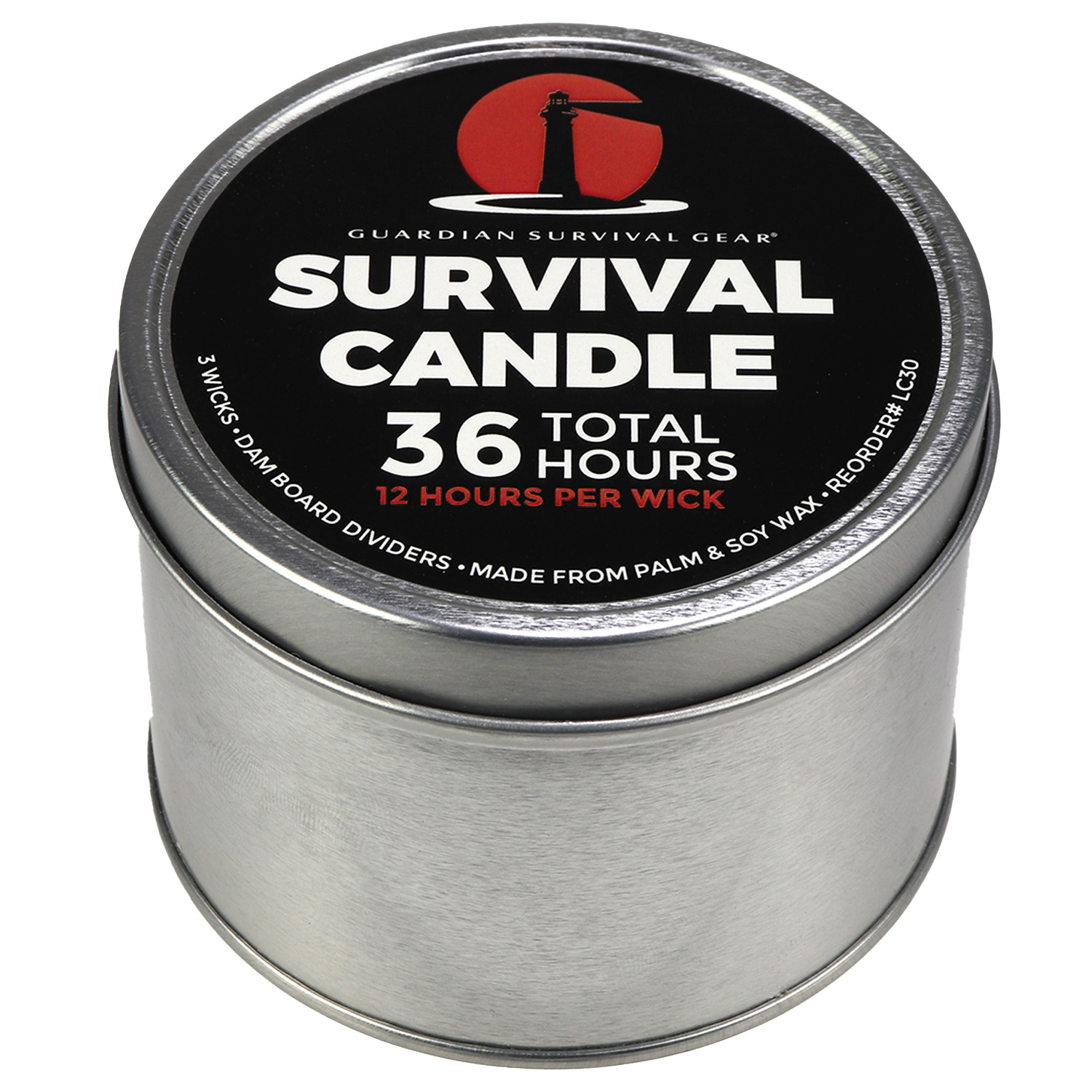 Skip to contentThis candle is a must in all survival situations in order to provide adequate lighting as the night falls into darkness. It lasts for 36 hours with three wicks, each providing 12 hours of burn time, this candle ensures long-lasting illumination. The candle has a diameter of 2-3/4 inches and is made of soy wax on the surface and plain wax as the main material, with a wax weight of 7 ounces (200 grams).