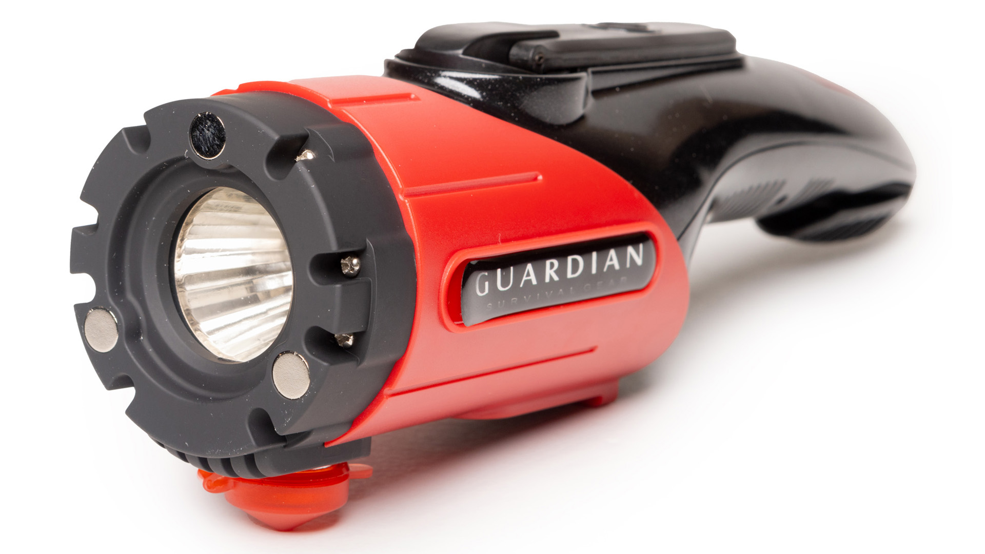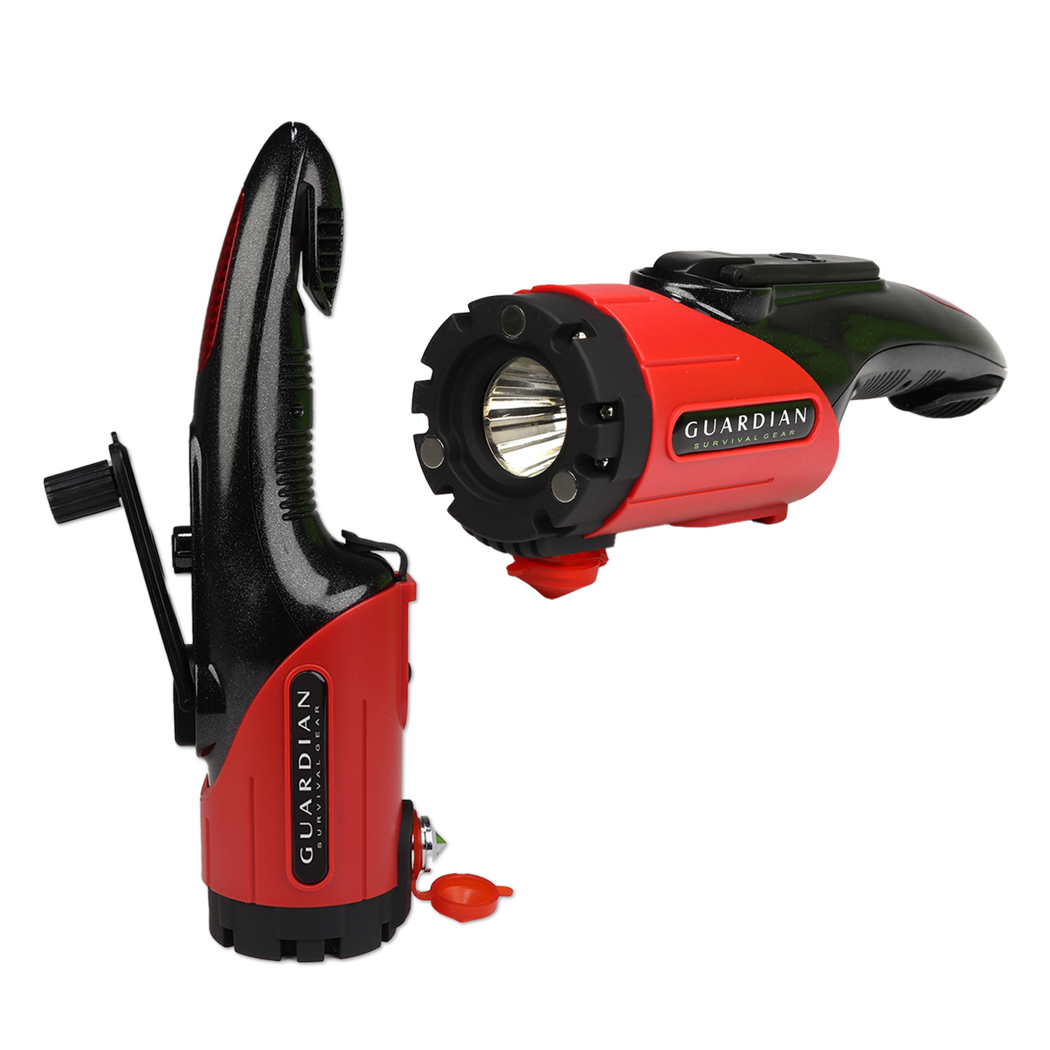 The Auto Guardian tool is an emergency flashlight with multiple lighting modes, including a powerful flashlight beam, a flashing red warning light, and a flashing white SOS signal.