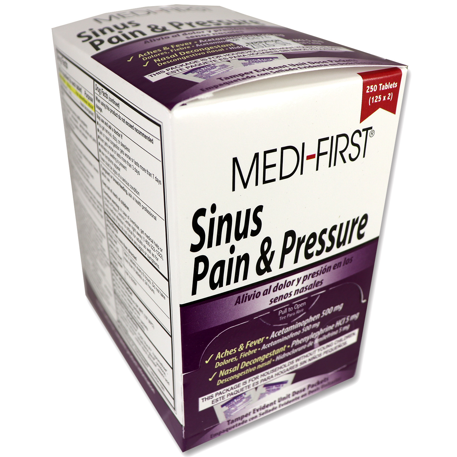 Medi-First by Medique Sinus Pain & Pressure tablets relieves sinus pressure associated with allergies, headaches and colds.