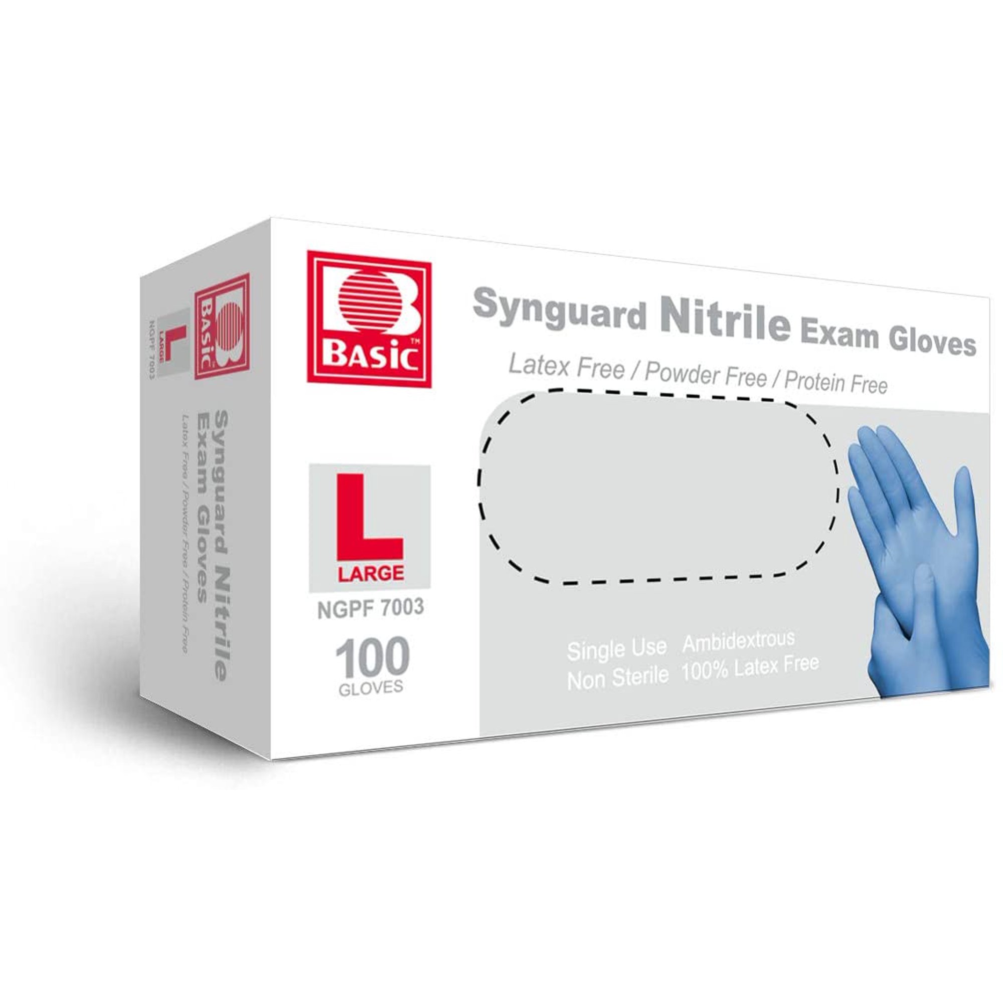 Skip to contentPowder Free Nitrile Gloves – Large – 100 Per BoxThese Nitrile Gloves have a wide range of applications in the medical, dental, laboratory, electronic and food service fields. Their textured surface improves your grip as they protect you from bodily fluids and the transmission of germs. Glove colors vary – product may vary from imageSafe-Touch Blue Nitrile Exam Gloves offer extra protection from contaminants and a superior-comfort fit without the risks commonly associated with latex. The gloves have textured fingertips and a minimum thickness of 3 mil. at the palm and 4 mil. at the fingertip. Ideal for a wide range of healthcare, professional, and food service environments.